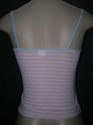 Here is a sexy sheerpink and white (horizontally) striped sleep cami/camisole/tank/lingerie with blue trim. It features a nice satin like feel against the skin.. These are brand new shelf pull items (no longer in stores). The only defect is a missing inner label due to trademarking laws. Tag says size Small, but there is significant stretch. (Mannequin is a size medium for reference). Good Luck.