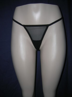 Here is a sexy pair of basic black mesh g-string style thong underwear. Brand new items that have been pulled from shelves. The only defect is a missing inner label due to trademarking laws. One size fits most. Good Luck