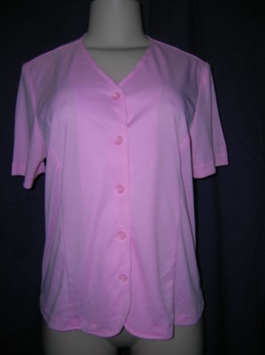 Here is a nice light weight button down t-shirt style blouse from BLAIR. Good for office or casual, this pretty pink top is a great choice. Good Luck