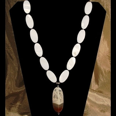 A beautifully polished natural mother of pearl was selected as a complimentary feature of this necklace.