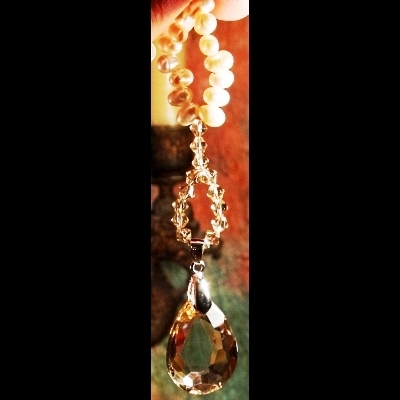 The champaign crystal cut in a shape of a teardrop is suspended on a sterling silver bail.