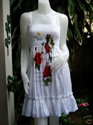 ADORABLE WHITE&ROSES PAINT TANK TOP DRESS