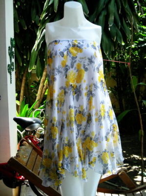 ASYMMETRICAL YELLO&GRAY&WHITE CHIFFON