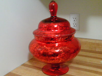 Large covered red glass dish