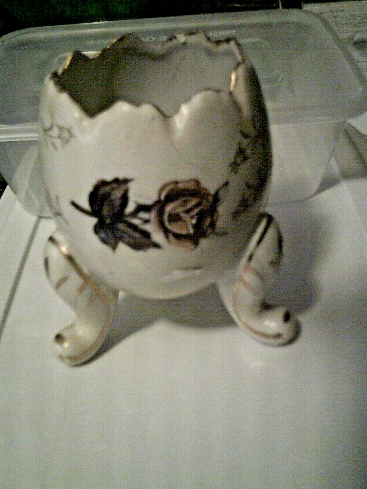 Footed egg floral design gold trim approximately 3.5" diameter see photo no issues
