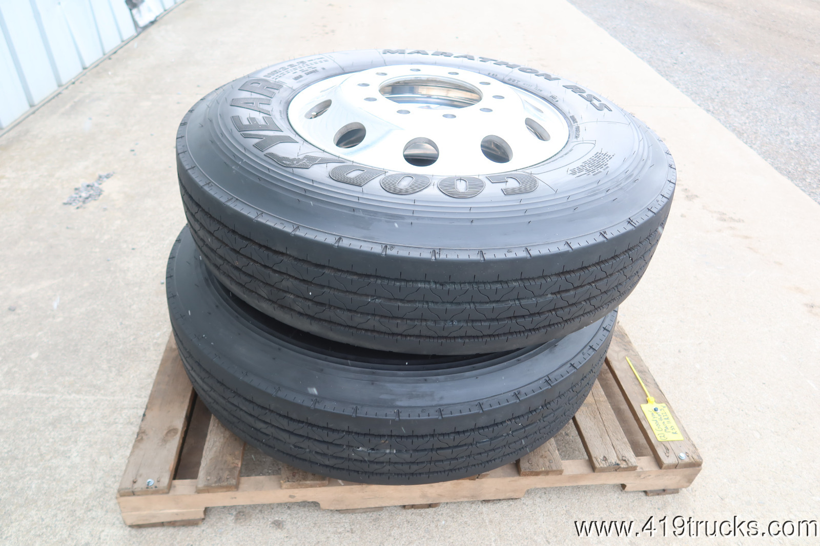 (2)USED Goodyear Marathon RSS 11R22.5 STEER VIRGIN Truck Wheel Tires Set Surplus