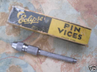 VINTAGE,stamped with war department arrow & 1956 IN ORIGINAL BOX, ECLIPSE,CHUCK TYPE PIN VICE holds size 0.030" to .062",A QUALITY TOOL from this old Sheffield manufacturer. o/all length is 3 3/4". [any questions please email me. EU & EUROPE £2.45 airmail, shipping cost. PLEASE TAKE TIME TO VIEW MY OTHER ITEMS ON EBAY