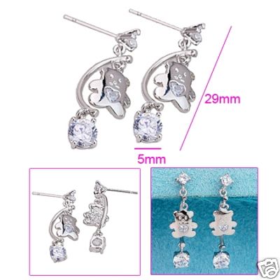 Item Description Material : 18K White Gold Plated Total Weight : 2.8 grams Quantity : 1 pair Stone Type : Cubic Zirconia Stone Color : As shown in picture Stone Cutting : Brilliant Round Cut, Heart Cut Dimension : Earring: 8 x 29mm Main Stone: 4mm Finish : Excellent Polished