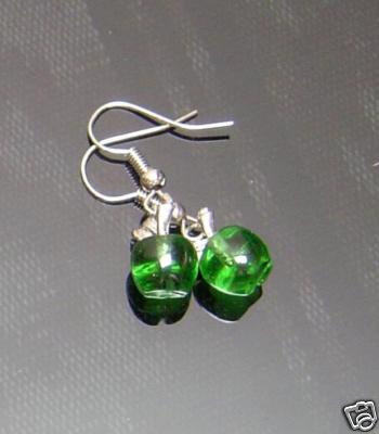 Genuine Crystal Pair Green Obsidian Apple Earrings