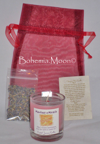 Each kit comes with directions on charging  your Candle prior to use.  I will also include a packet of dried lavender from my garden.  Lavender has the planet influence of Mercury, and the element of Air.  It's properties are Love, Power, Happiness, and Protection.  All items come in a beautiful re-usable gift bag.
