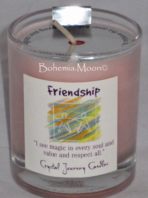 This collection includes a high quality Crystal Journey VOTIVE candle in a glass votive holder.   The FRIENDSHIP candle has been carefully developed using the purest of ingredients for the charge.  Fragrances for this candle include a mix of Musk, Carnation and Wisteria.