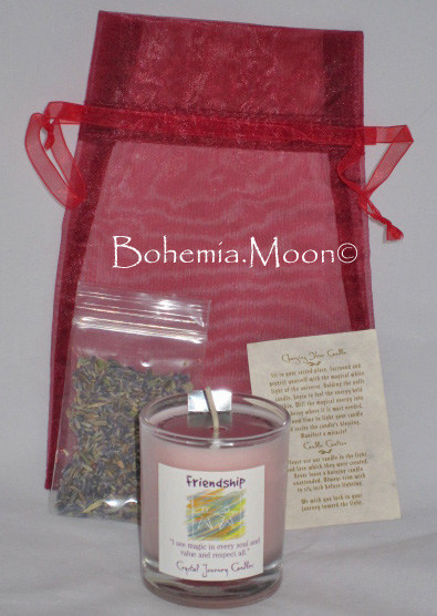 Each kit comes with directions on charging  your Candle prior to use.  I will also include a packet of dried lavender from my garden.  Lavender has the planet influence of Mercury, and the element of Air.  It's properties are Love, Power, Happiness, and Protection.  All items come in a beautiful re-usable gift bag.