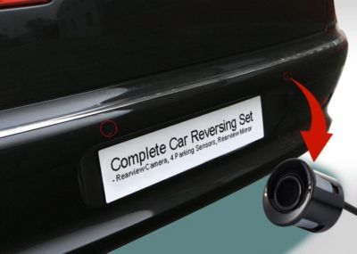 Complete Car Reversing Set - Rearview Camera, 4 Parking Sensors, Rearview Mirror