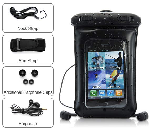 Waterproof Case for iPhone, iPod Touch, Android Smartphones with Waterproof Earphones
