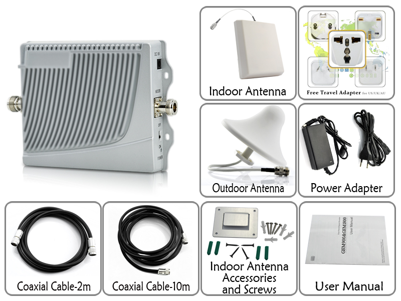 worldwide use Cell Phone Signal Booster (Dual Band GSM 900MHz/1800MHz).