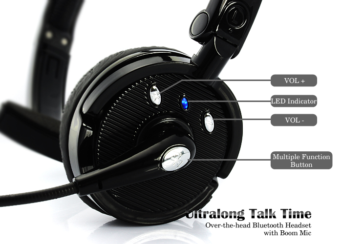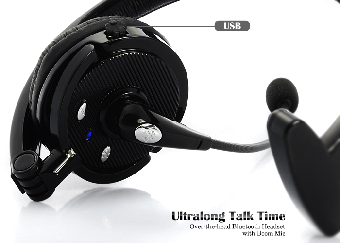 Over-the-head Bluetooth Headset with Boom Mic (18 hours talk time)