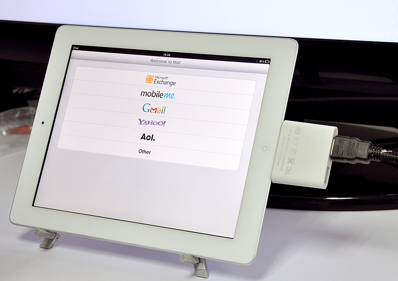 to your iPad 2 and the other to your widescreen TV, video projector, or