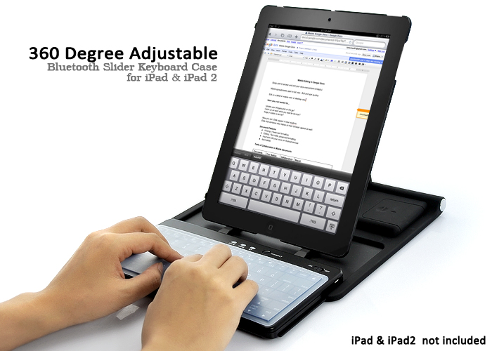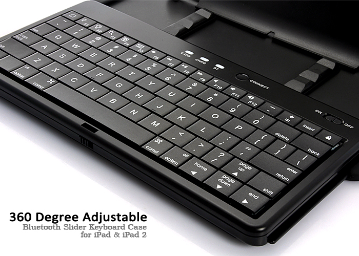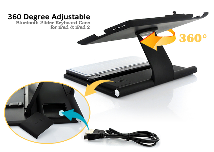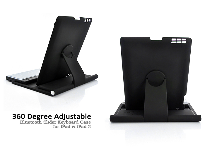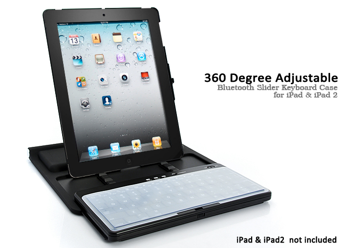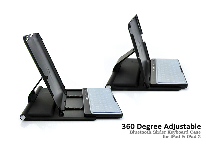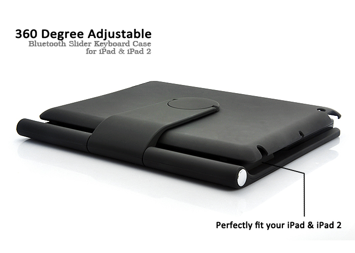360 Degree Adjustable Bluetooth Slider Keyboard Case for iPad & iPad 2