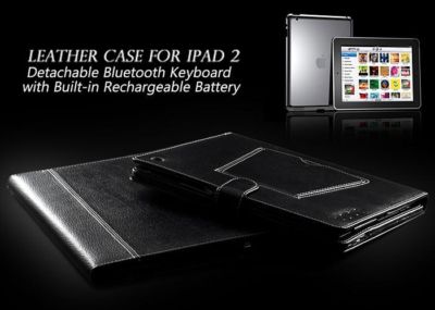 Leather Case for iPad 2 - Detachable Bluetooth Keyboard with Built-in Rechargeable Battery