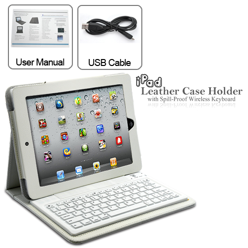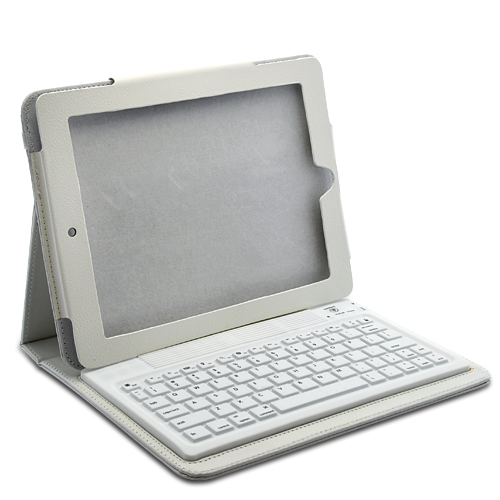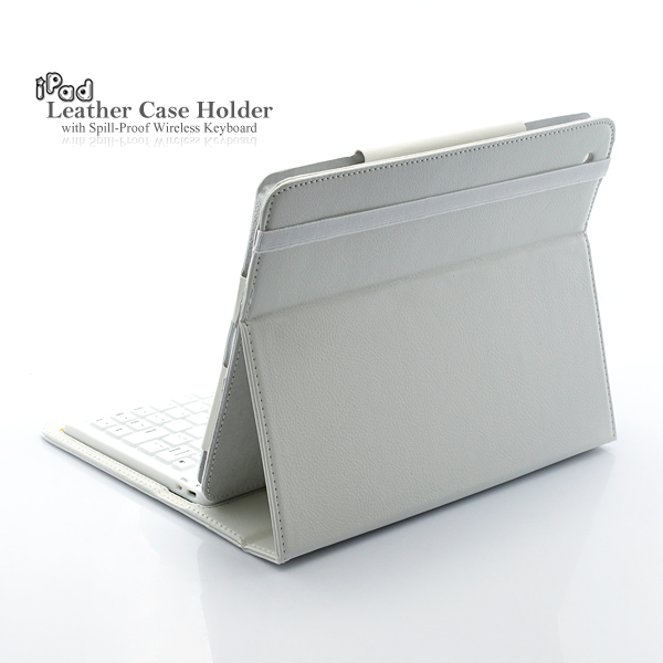 Leather Case with Spill-Proof Wireless Keyboard for iPad 2 (White)