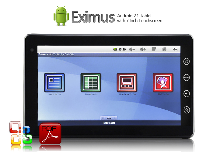 true Android 2.1 Tablet with a 7 inch touch screen, 720MHz processor,