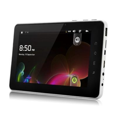 - Operating System: Android 2.3 Gingerbread - CPU: Telechips TCC8803 Cortex A8 - CPU Speed: 1.2 GHz - RAM: 512 Mb - Keyboard: On screen keyboard - Screen: 7 Inch TFT Capacitive Multi-Touch Screen - Screen Resolution: 800 x 480 - Camera: Front-facing camera - Camera Resolution: 640x480 (Video), 1600x1200 (Photo) - Built-in Speaker and Mic - Battery Type: 3200mAh Rechargeable Battery - Battery / Run Time (up to): Around 4 hours working time - Power Device Type: AC adapter v- Voltage required: 100V - 240V - Color: Black face panel with gray back cover -