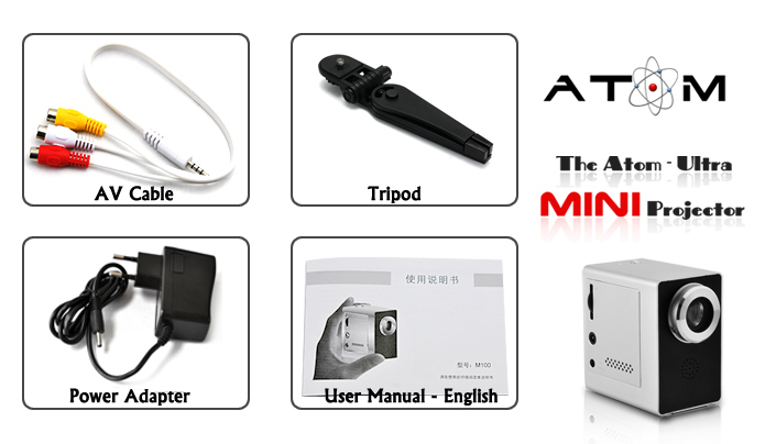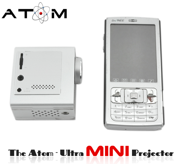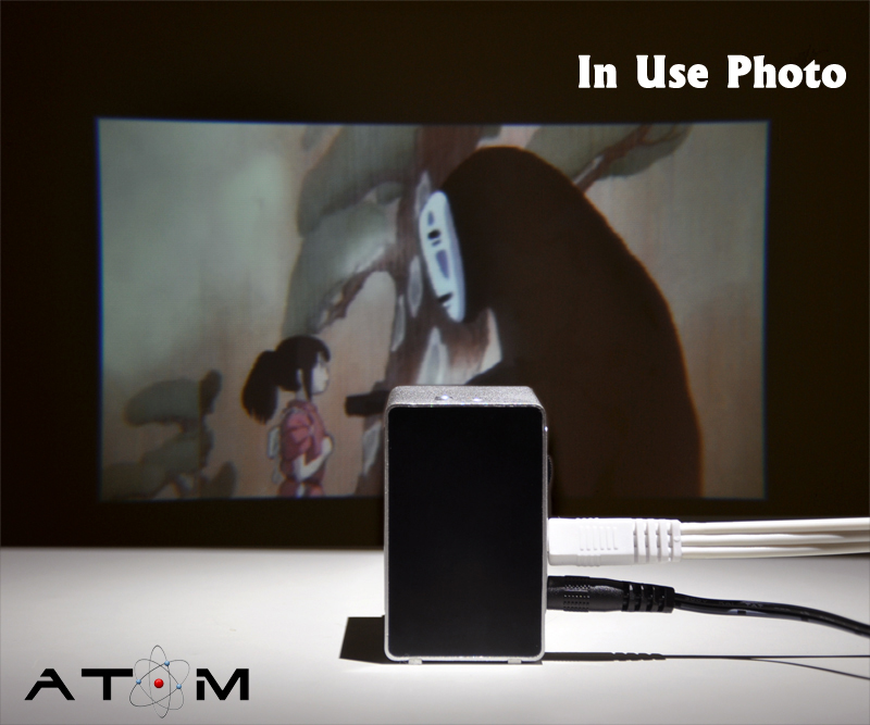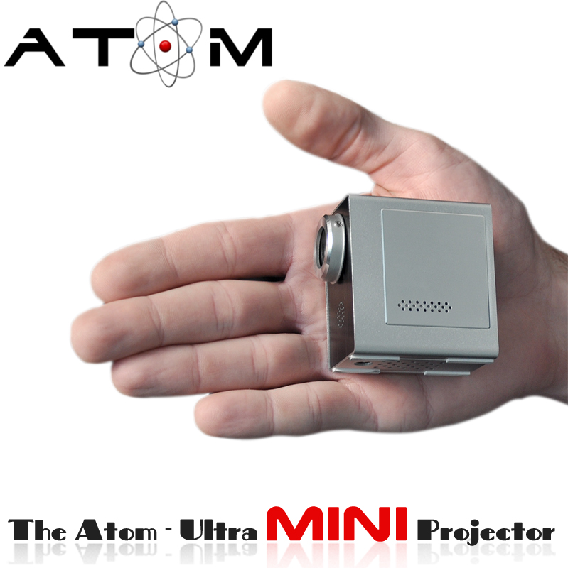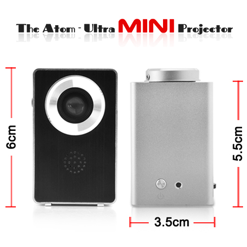 Size: Just how big is it exactly? 5.5 cm x 6 cm x 3.5 cm. No you're not dreaming - The Atom is 3.5 cm thick! Quite honestly, this is one of the, if not the, tiniest projectors you've ever seen!