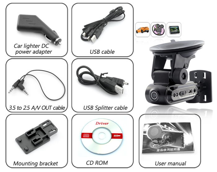 Car DVR with GPS Navigator Mount (Micro SD, A/V OUT)
