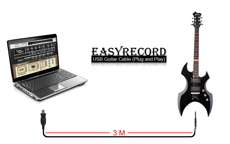 Description : EasyRecord – USB Guitar Cable (Plug and Play), a brilliantly simple and effective device for easy music recording and editing.