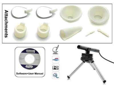 Attachments: - Focus Ring (x2) - Tooth Reflector (x2) - Small Focus Cup - Large Focus Cup - Probe - Ear Scoop - Ear Probe (x2)