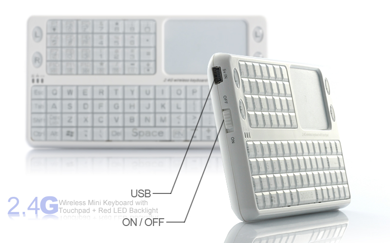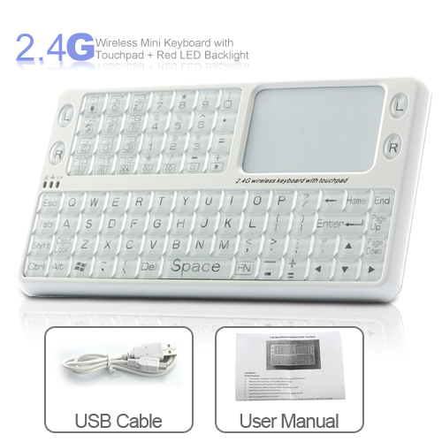 2.4G Wireless Mini Keyboard with Touchpad + Red LED Backlight
