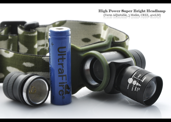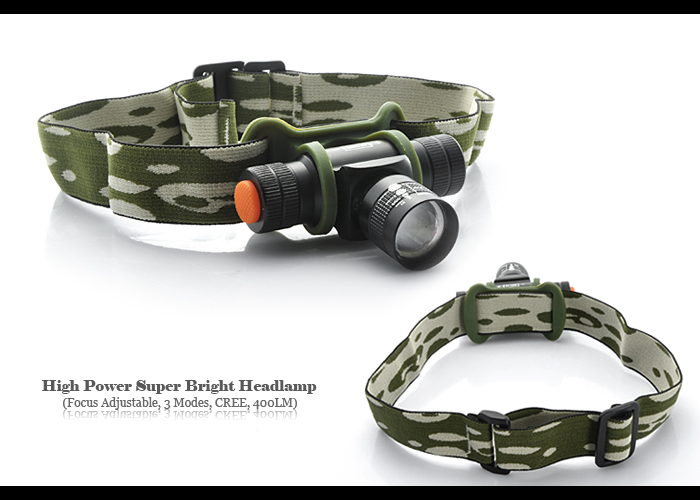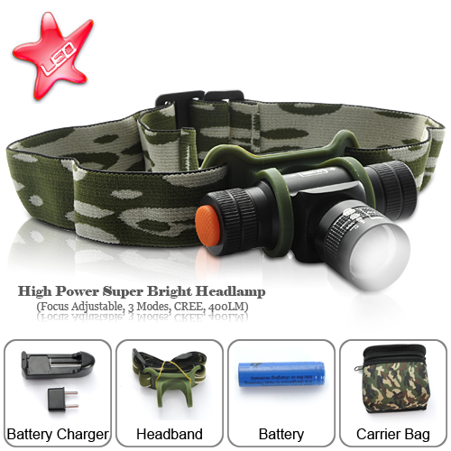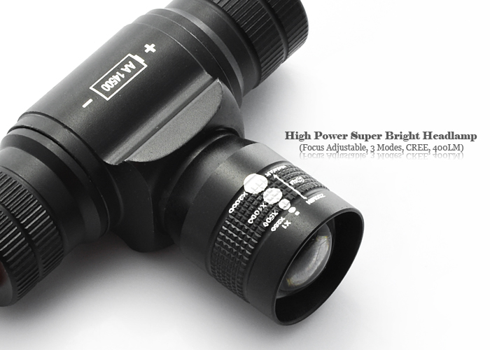 High Power Super Bright Headlamp (Focus Adjustable, 3 Modes, CREE, 400LM)