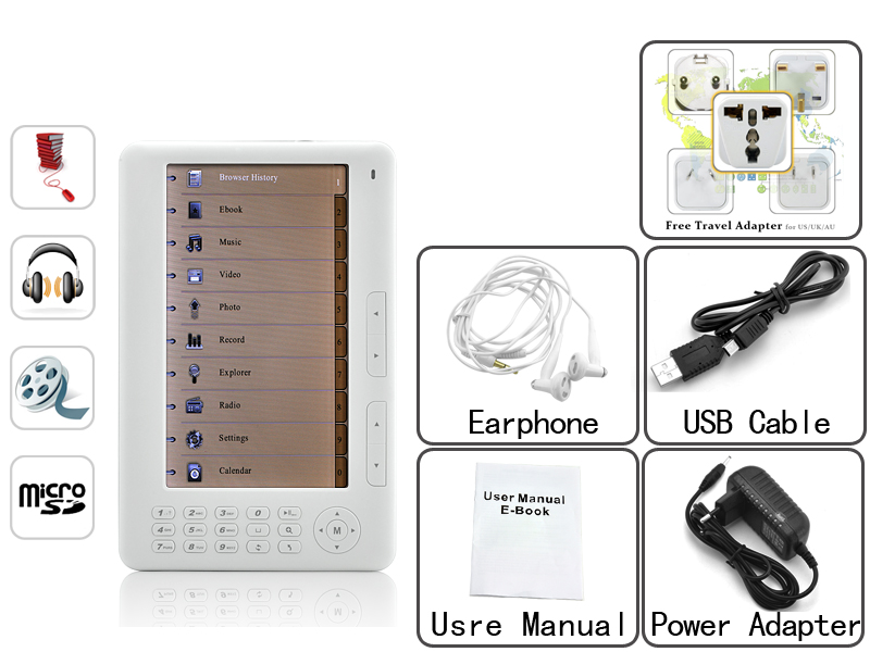 Manufacturer Specifications - Main Function: 7 inch high resolution eBook reader and super media player