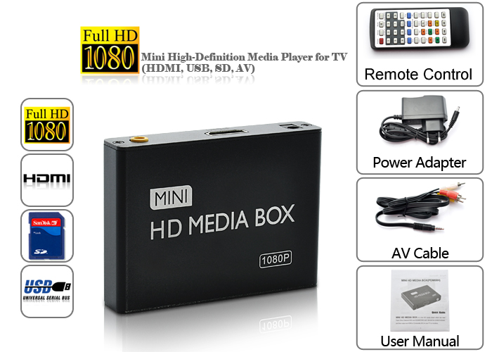 Mini High-Definition Media Player for TV (HDMI, USB, SD, AV)