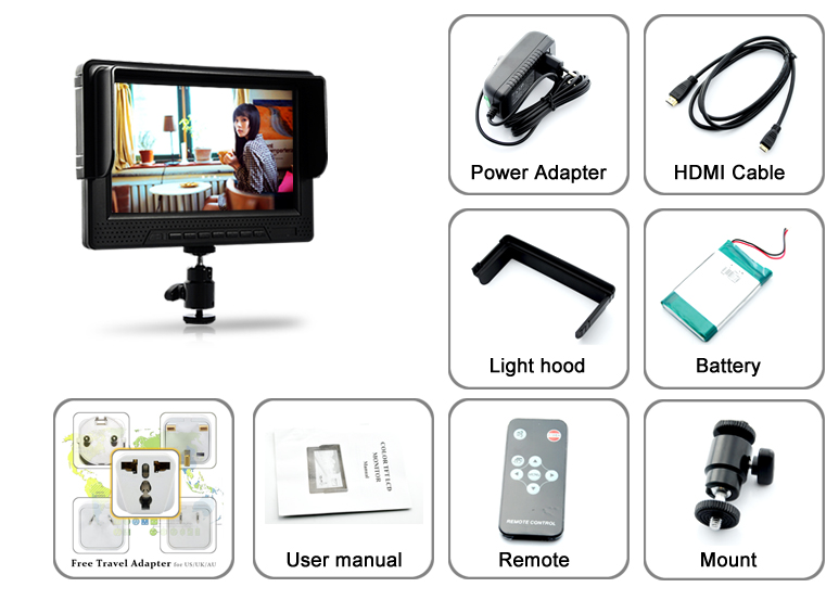 Super Bright 1080P HD DSLR 7 Inch Monitor (1080P, HDMI)