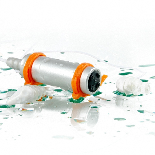 Waterproof earpieces screw into slot and have high-comfort ear plugs to stay in your ears while keeping water out