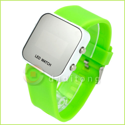 Mirror LED Digital Rubber Wrist Band Sports Watch + Box