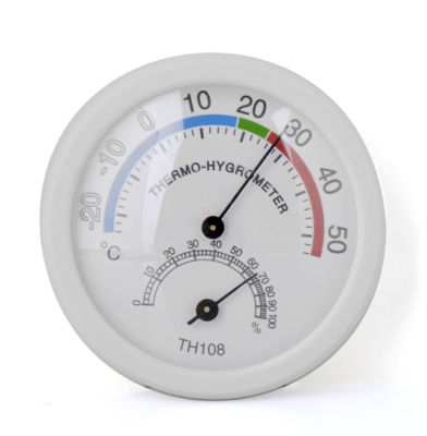 Novel design, easy degree, high precision Light and easy to use Movement of all imported parts, the aluminum pointer design. Easily deformed Suitable for family, hotel, school, hospital, laboratory and etc Temperature Measuring Range: -20-50 â Humidity Measuring Range: 0-100% RH Humidity Accuracy: ± 5% RH (50%-99%RH), ± 7% RH (25%-49%RH), ± 9% RH (other) Temperature Accuracy: ± 1 â (10-32â), ±2 â (other) Material: Metal & ABS Size: Approx 74.5mm (Dia.) Weight: 80g (with packing)