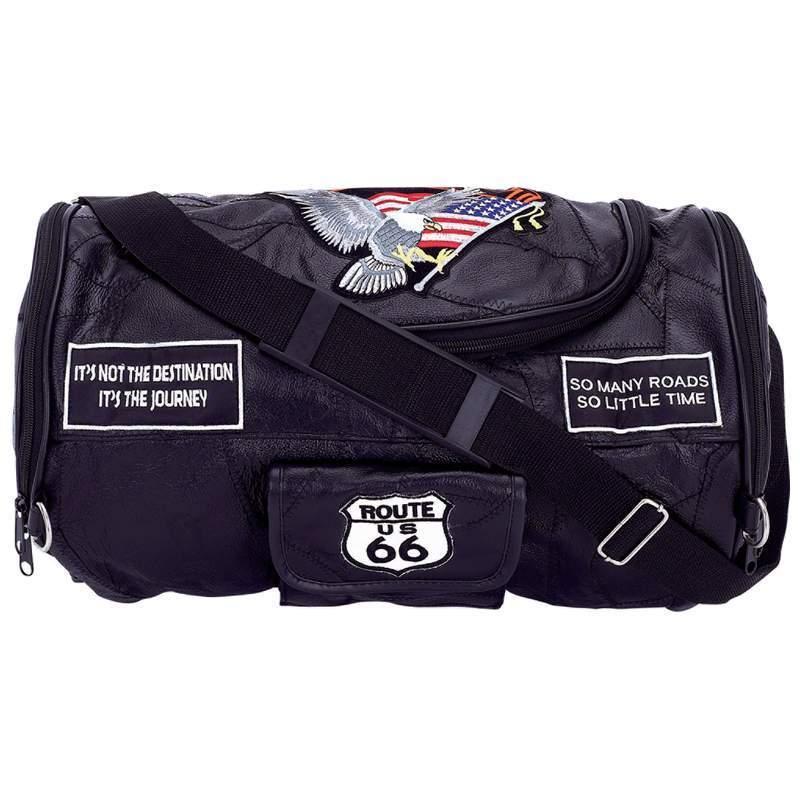 Diamond Plate™ Rock Design Genuine Buffalo Leather Motorcycle Barrel Bag with Patches