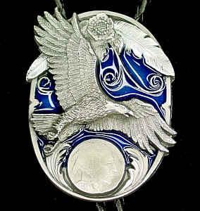 Large Sculpted and Enameled Pewter Bolo - Eagle and Nickle Available in standard pewter or enameled pewter, as shown above.