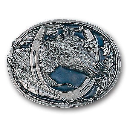 Pewter Belt Buckle - Horse Head in Horseshoe