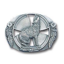 Pewter Belt Buckle - Howling Wolf (Diamond Cut and Cut Out)