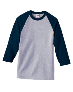 100% preshrunk heavyweight cotton; seamless rib at neck; contrasting neck and sleeves; 3/4-length raglan sleeves; double-needle stitching on sleeves and bottom hem; Heather Grey is 90% cotton, 10% polyester;