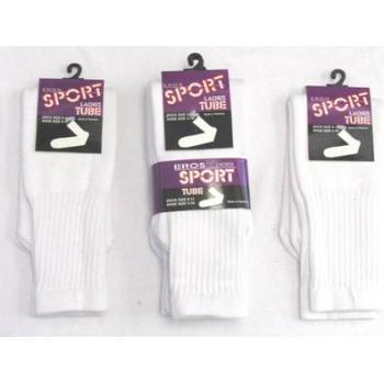 Ladies cotton sport tube socks. Sock size: 9-11. Approximate shoe size: 5-8. Individually tagged with a band around 3 pairs. Priced per pair NOT per 3 pack. Case Pack 120