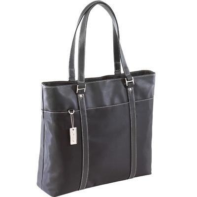 The Targus Ladies Deluxe Tote is designed to fit up to 15.4" widescreen notebooks. The tote includes the Targus patented SafePORT Air Cushion System to increase the level of laptop protection. This stylish case includes a padded laptop compartment to help prevent drop damage. For added convenience there are interior pockets for a mobile phone, business cards, pens and files. A key clip keeps keys in a safe, easy-to-find location, while the exterior pockets are perfect for airline tickets, or other items you need to find quickly. For style, this case has a sleek, classic design, fashionable lining, metal feet to protect the bottom of the case and a removable mini bag for smaller, personal items.