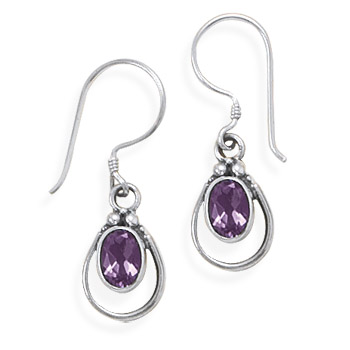 Oxidized Oval Amethyst Earrings on French Wire