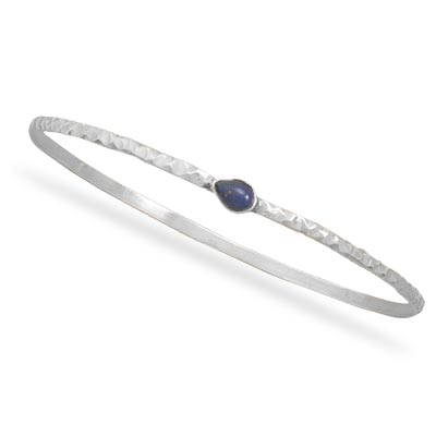 hammered bangle bracelet features a 4mm x 5.5mm Lapis stone. Bangle is 2.5mm