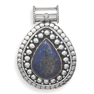 sterling silver tear shape lapis slide with bead and rope design. Lapis