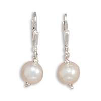 White Cultured Freshwater Pearl with Bead Lever Earrings