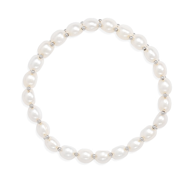 freshwater button pearl and sterling silver bead stretch bracelet. The pearls